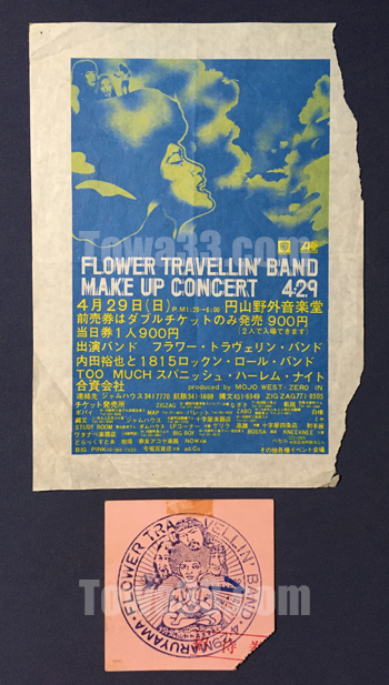 [tow228017]ビラチラシ/半券付,1973年?円山野外音楽堂,FLOWER TRAVELLIN’ BAND MAKE UP CONCERT