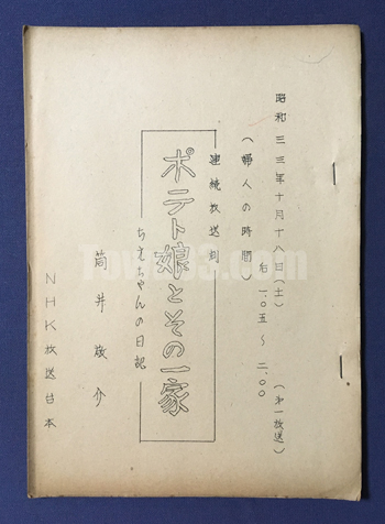 [tow768075]放送台本/脚本,昭和33年,ポテト娘とその一家/ちえちゃんの日記 (放送台本/脚本,昭和33年,NHK)“婦人の時間”連続放送劇ポテト娘とその一家/ちえちゃんの日記作:筒井敬介/出演:江利チエミ,他 ≈B5,31頁/ ヤケ,茶シミ,ヨゴレ,折,小ヤブレ/ ¥1500