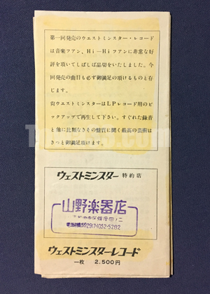 [tow146049]_型録/ウェストミンスター・レコード,第二回新譜ガイド (型録/東京赤坂国際ラジオセンター)ウェストミンスター・レコード第二回新譜ガイド ≈85×166㎜,12面折/ ヤケ,店印/ ¥1500