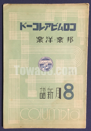 [tow343016]_型録/1931年,コロムビアレコード邦楽洋楽8月新譜 (型録/1931年,Columbia)コロムビアレコード邦楽洋楽8月新譜 ≈B6大,28頁/ ヤケ,ヨゴレ,茶シミ,背上イタミ,綴不良※全頁,見返落書.表紙小書込※ペン,小角折,店印/ ¥1000