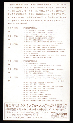 [tow256050]_公演チラシ/1972年,Swingle Singers/ スイングル・シンガーズ (公演チラシ/厚紙,郵便貯金ホール,1972年)A KYODO TOKYO PRESENTATION ’72Swingle Singers/ スイングル・シンガーズ裏解説:高木三郎 横:≈103㎜/ ¥1000