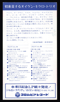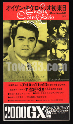 [tow256048]_i,公演チラシ/1972年,Eugen Cicero Trio/ オイゲン・キケロ・トリオ (公演チラシ/厚紙,郵便貯金ホール,1972年)A KYODO TOKYO PRESENTATION 1972Eugen Cicero Trio/ オイゲン・キケロ・トリオ裏解説:本多俊夫 横:≈102㎜/ ¥1000